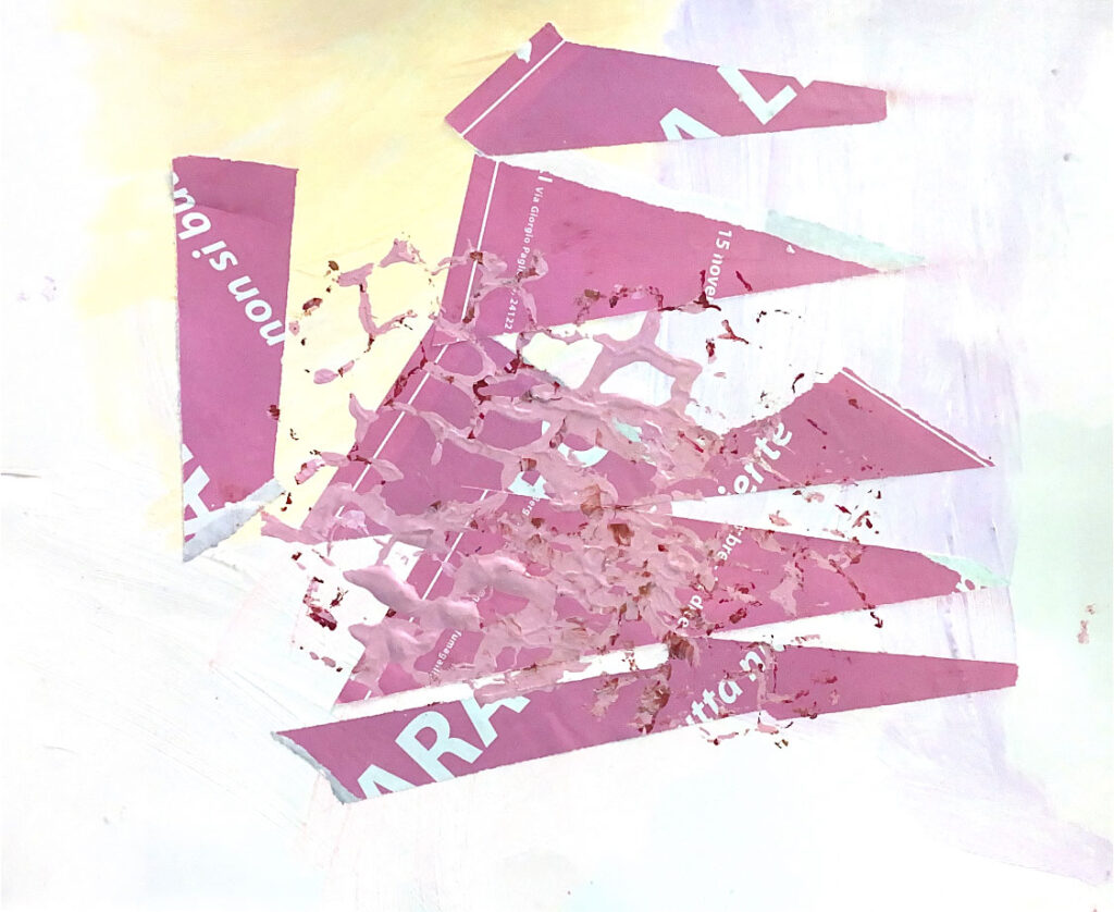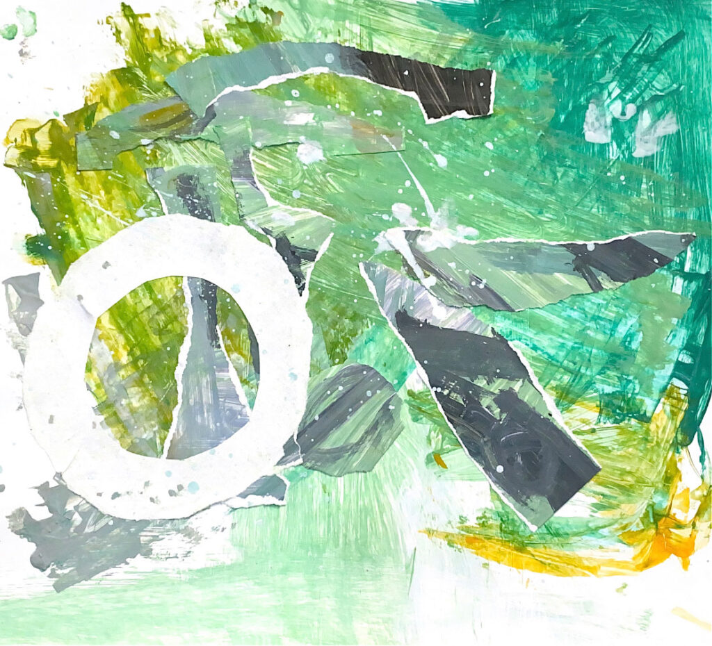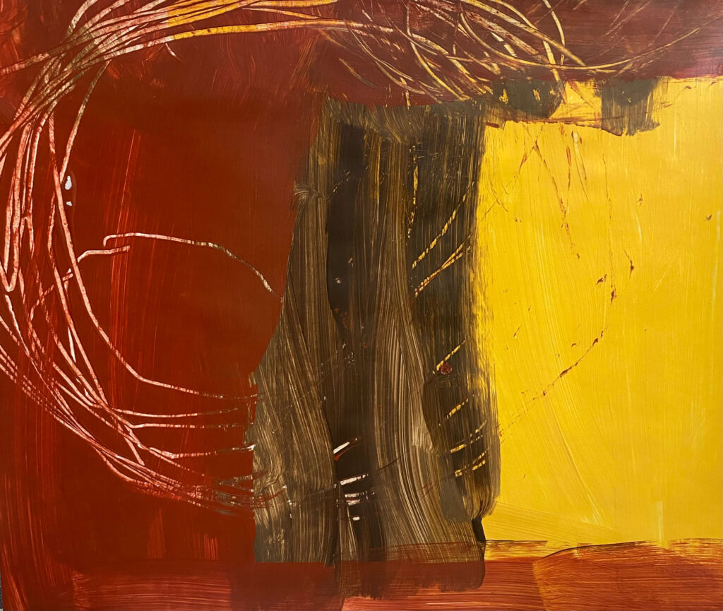 Scooping up the paint with her brush, Leah uses bright color that sweeps across the page. She chooses her paint carefully as her bold abstracts come to life on canvas. “Red is my favorite color.”