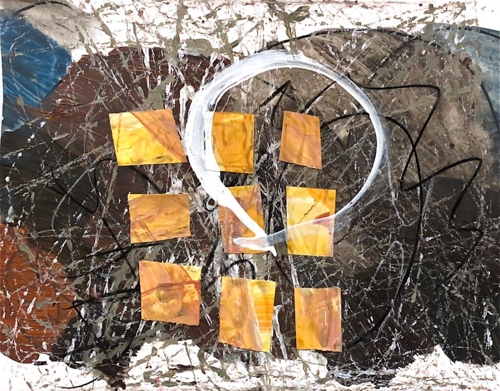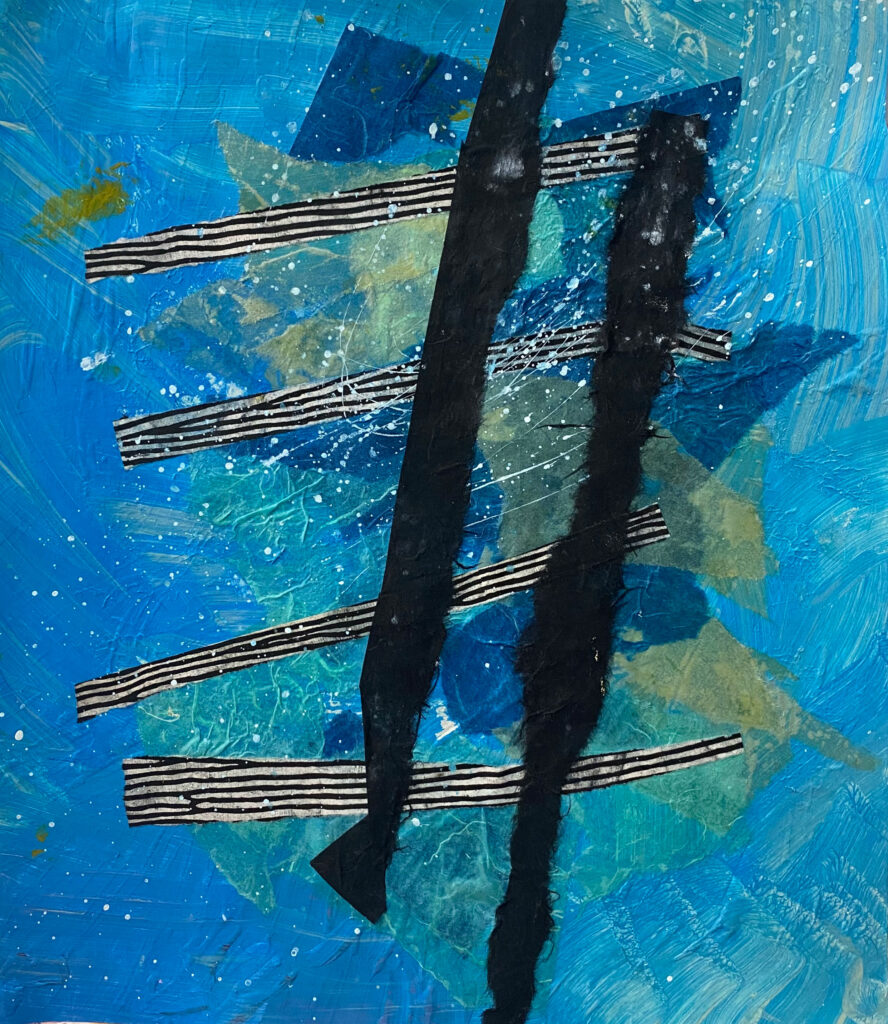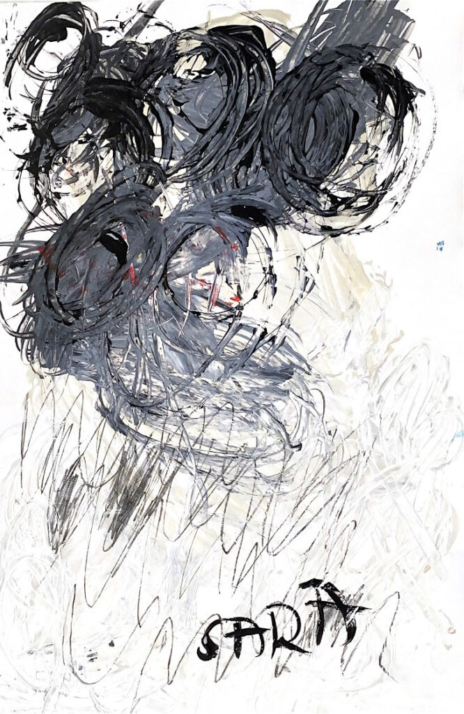 Sara becomes immersed in the simple act of applying paint to canvas and watching what happens as colors interact with each other. She prefers working on large canvas, where her style can really come alive.