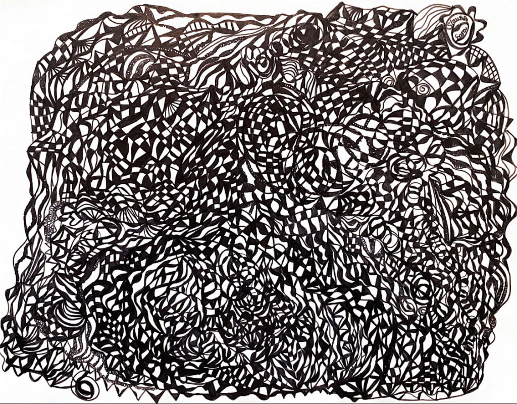 “I can really express my feelings when I do my art.” Sara works primarily in pen and ink; her pop-art style is incredibly intricate. It usually takes months to complete one small piece of art.
